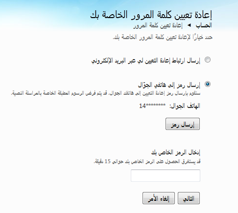 سيظهر لنا خياران الاول ارسال تأكيد على الجوال او على الاميل البديل.